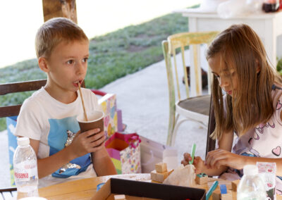 Можим да ви предложим различни забавления за децата, в зависимост от тяхната възраст и интереси – щафетни игри, приключения за малки откриватели, игри с елементи на конструиране, различни по вид арт работилници и още много други.
